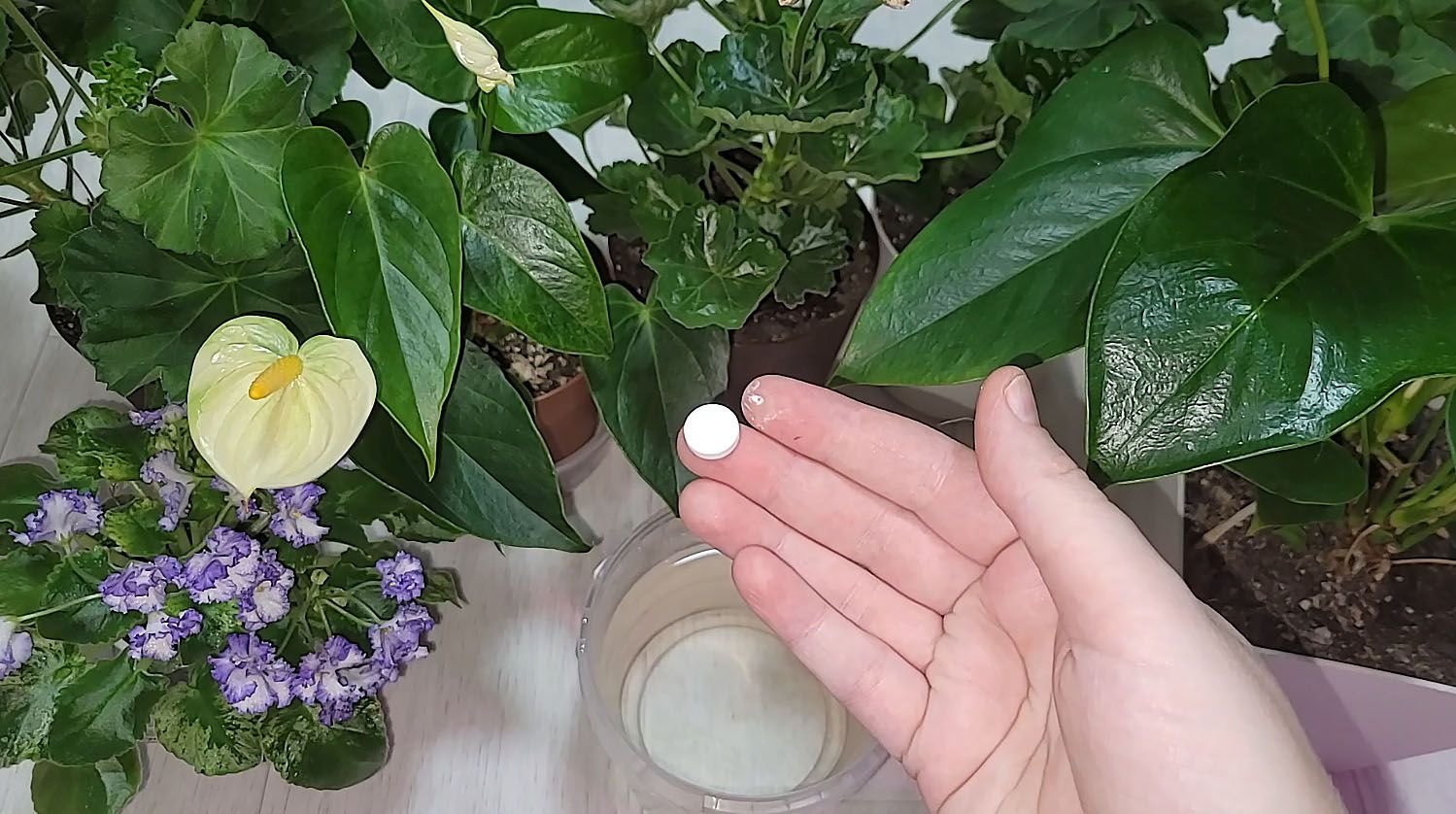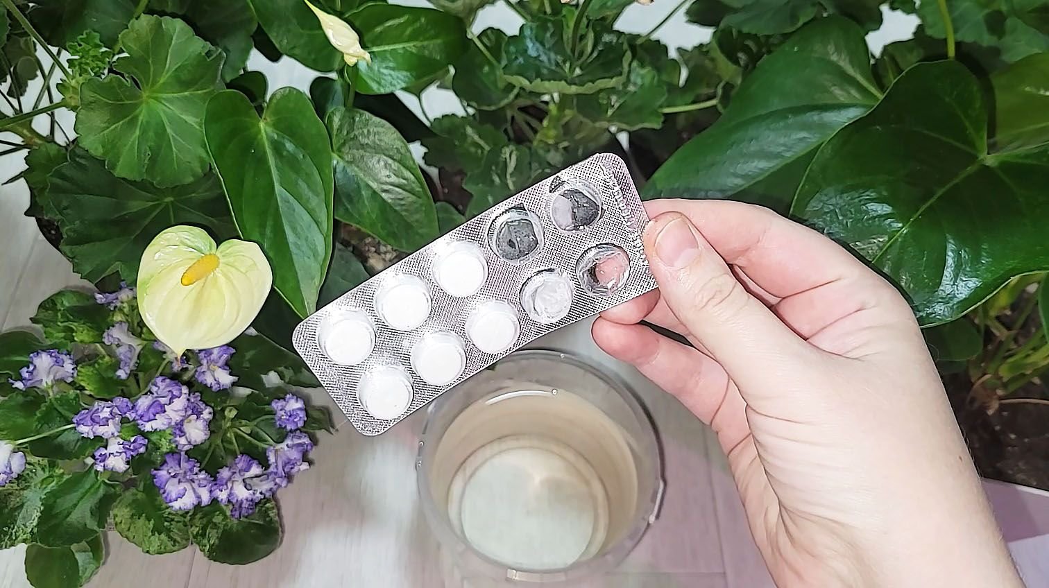 1 таблетка под любой цветок, чтобы листья стали яркими и зелеными
