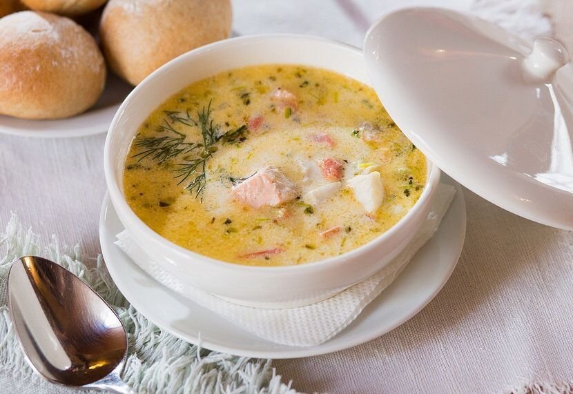Ещё одно неожиданное сочетание рыбы и молока в одном блюде. Этот суп готовится на острове любой красной рыбы с добавлением молока, картофеля, лука и специй. Это как наша уха только с молоком.