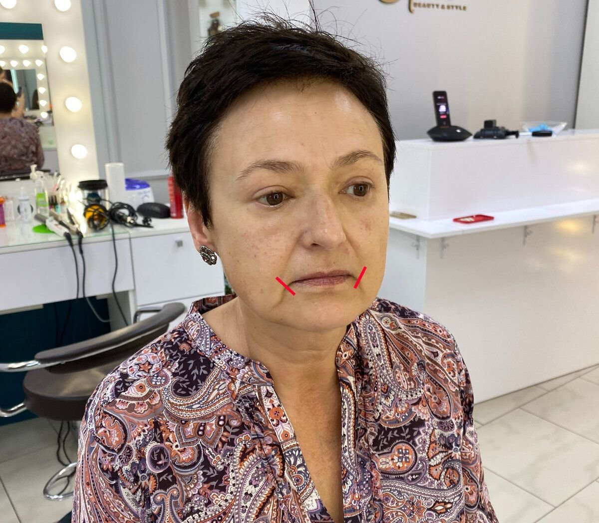 Помимо опущенных уголков губ у нас в этом месте имеется естественная тень. Если её нивелировать, то считайте мы моментально будем выглядеть визуально моложе.