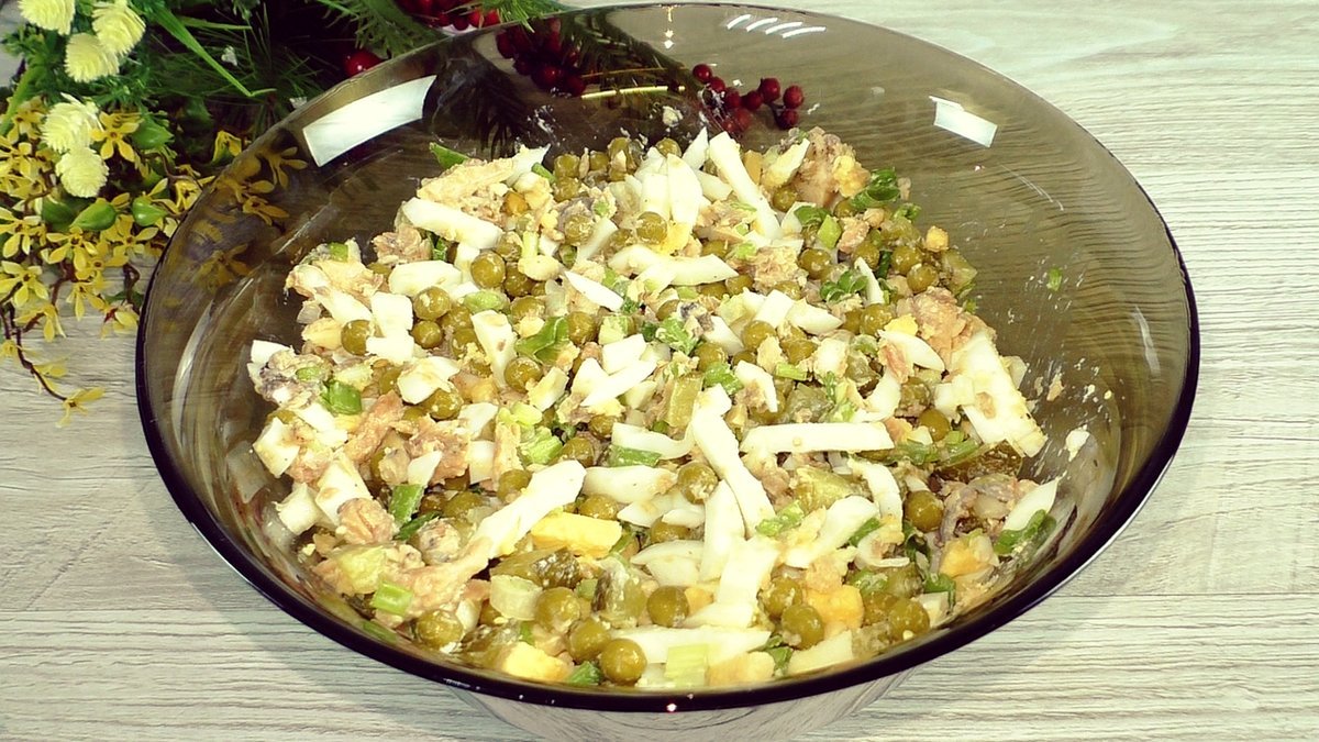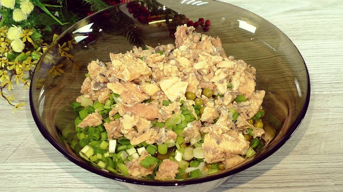 Беру рыбные консервы и готовлю салат, получается много, готовится просто: хоть на праздничный стол, хоть на каждый день