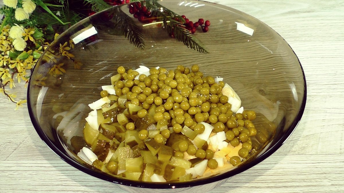 Добавить маринованные огурцы по вкусу. Я добавляю 2 средних огурца.
