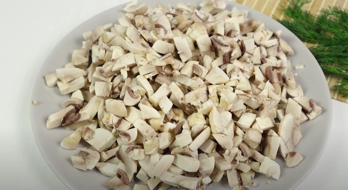 ШАГ 3: Шампиньоны моем и нарезаем на небольшие кусочки.