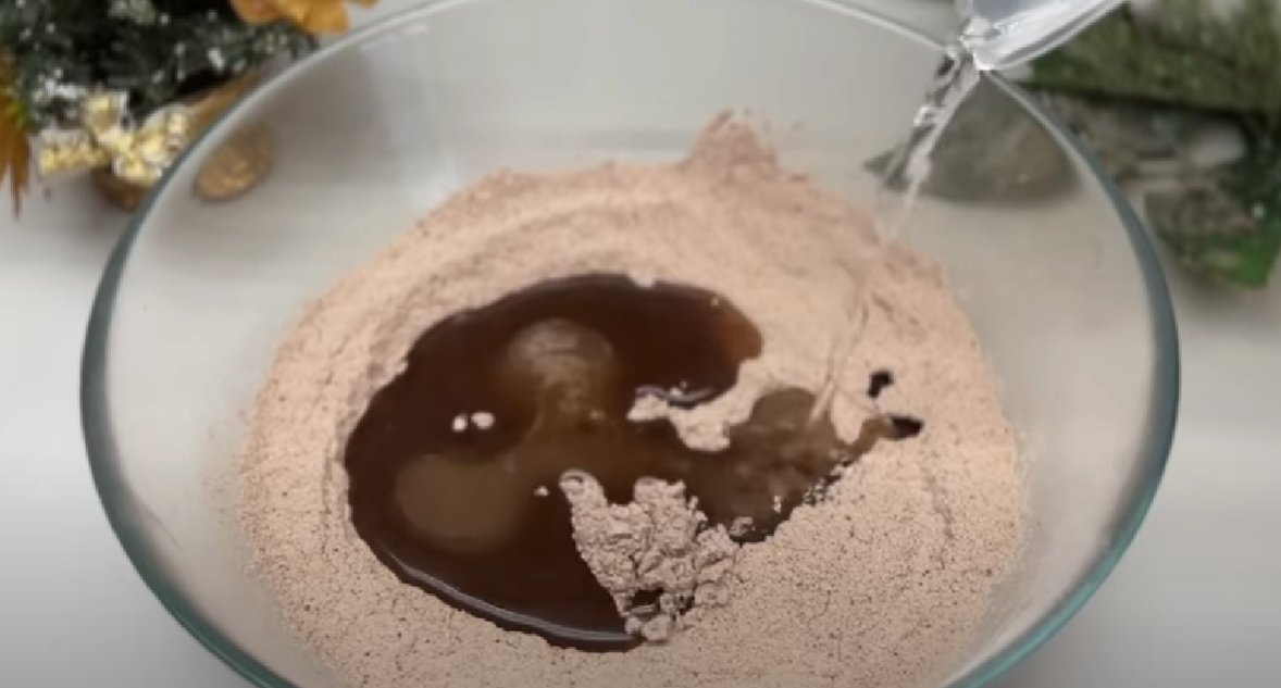 ШАГ 3: Перемешиваем сыпучие продукты и добавляем растительное масло.
