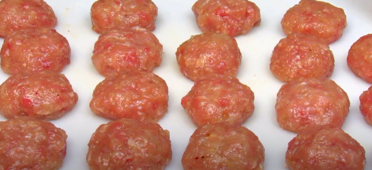 ШАГ 3: Из фарша лепим небольшие фрикадельки, и как только картофель закипит, отправляем их в кастрюльку.