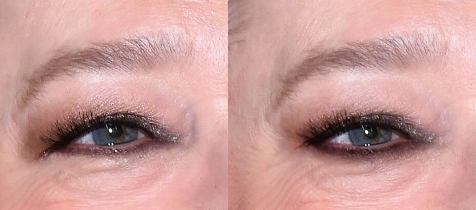 Небольшое сравнение. Видно, что на 2 фото уголок глаза визуально приподнялся