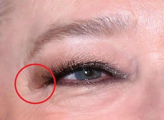 Однако если эти ошибки многим знакомы, то есть одна из них, которая встречается до сих пор среди женщин старшего возраста. Почему именно среди женщин старшего возраста? Потому что именно с возрастом веки в большинстве случаев приобретают нависание у внешних уголков глаз, причем такое дряблое нависание (если можно так выразиться).