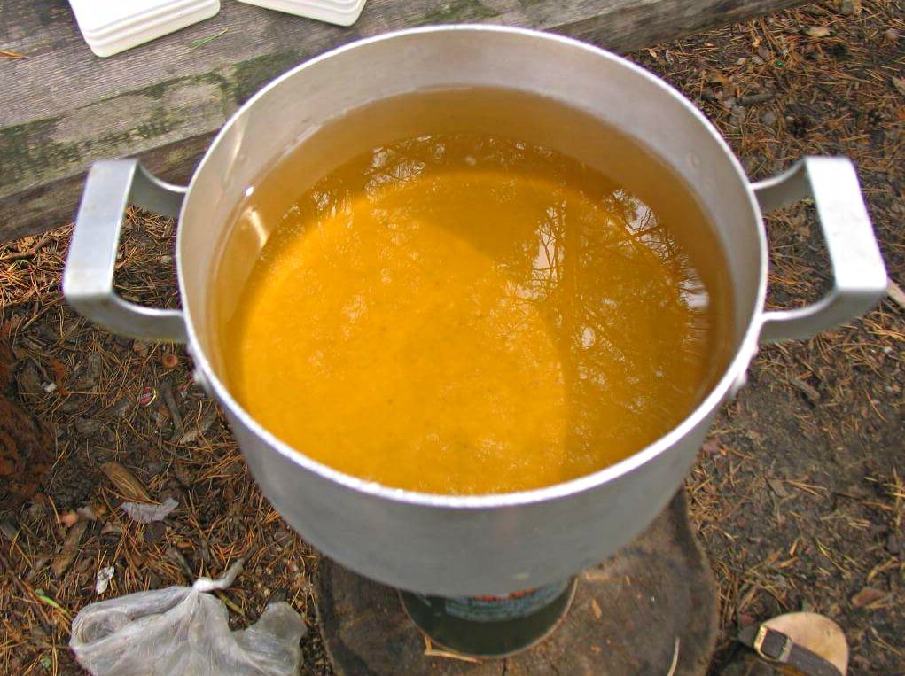 Налейте в ведро воду (три литра), теперь нужно размешать в ней одну ст. ложку меда.