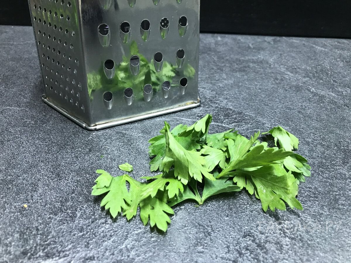 Поверхность терки с крупным (самым большим) размером зубцов, так же универсальна, как и со средним, только размер измельчаемых продуктов из-под таких зубцов выходит заметно крупнее. С ее помощью можно легко освободить от стеблей зелень петрушки и кинзы, поместить стебель в отверстие и потянуть за него, так вся зелень будет отделена от стебля. Отличный и простой способ, как говорится быстро и сердито.