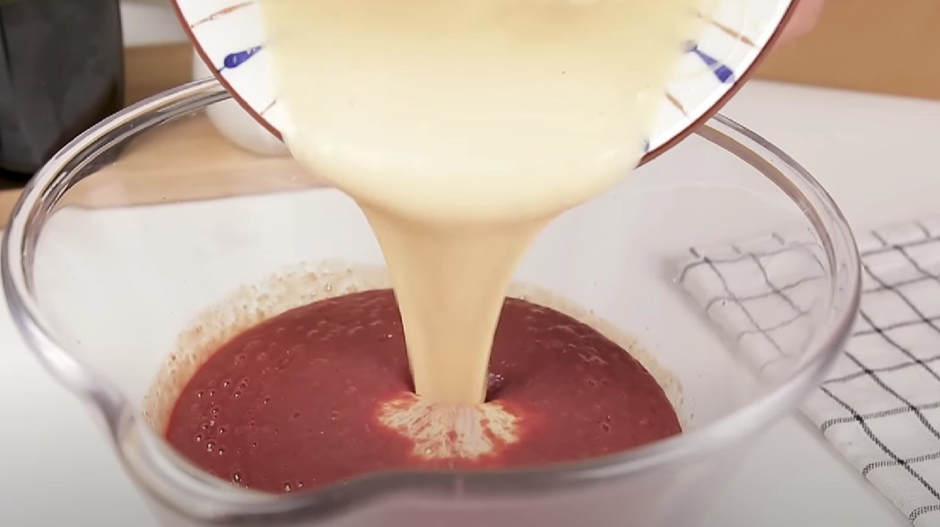 ШАГ 4: Получившееся тесто вливаем в печеночную массу, перемешиваем.