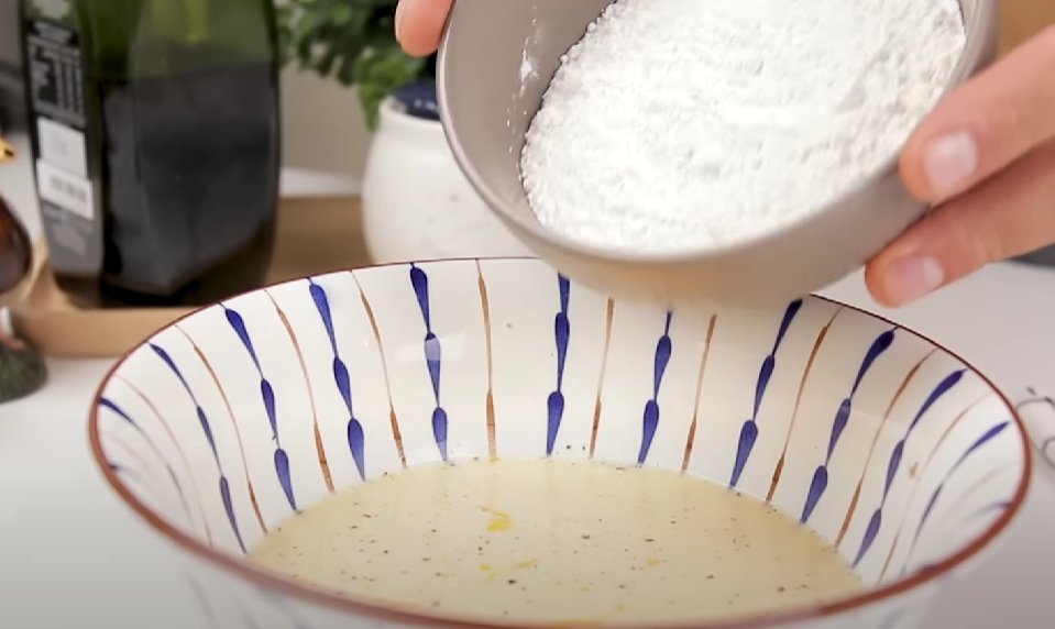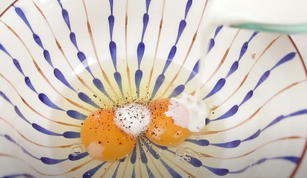 ШАГ 2: В отдельной мисочке соединяем яйца с молоком, солью и перцем.