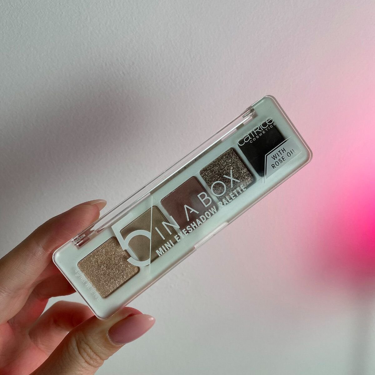 Поскольку стрелку я решила делать коричневую, то и тени взяла аналогичных оттенков. Используемая в сегодняшнем макияже палетка теней — от Catrice.