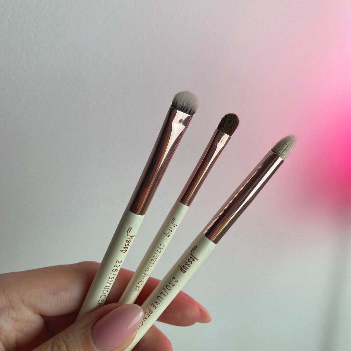 Кисти использую те, что на фото выше. Можно любые другие формы, главное — чтобы они были небольшими и подходили под ваш размер глаз. Можно использовать больше кистей и взять, например, ещё одну для чистой тушевки. Не бойтесь экспериментировать!