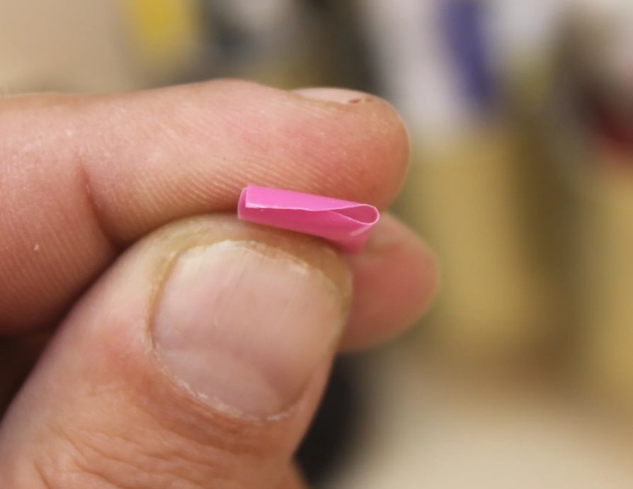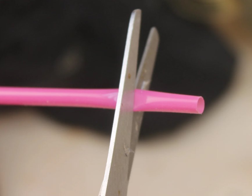 Для того чтобы показать, как восстановить молнию, я нашел в своем гардеробе старую кофту для примера. Вы можете увидеть на фото, что неподвижный штифт уже сильно разболтался, поэтому потребуется срезать его ножом. Нам потребуется приобрести в магазине трубочки для коктейля, которые продаются в любом ближайшем магазине. Я буду использовать для контраста розовый цвет, чтобы наглядней было.