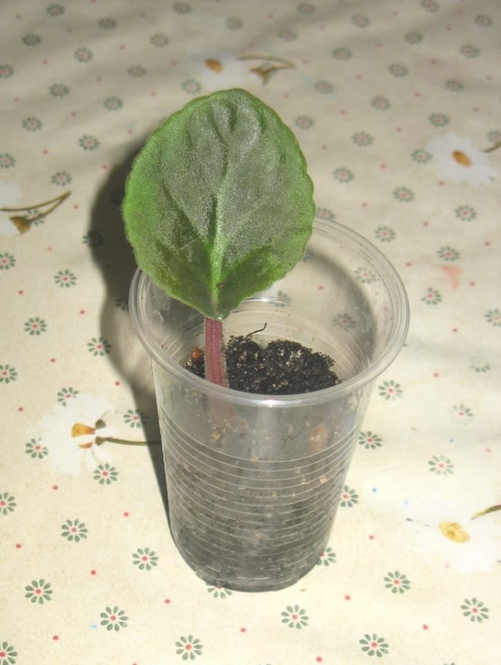 Почву слегка поливают, используя для этого воду, в которой укоренялся до этого лист фиалки. Стакан помещают в зип-пакет и ставят в светлое тёплое место под лампу. Необходимо будет оставить в покое фиалку на 3 недели. В это время не нужно выискивать деток, проверять корни, поливать и тревожить листочек.