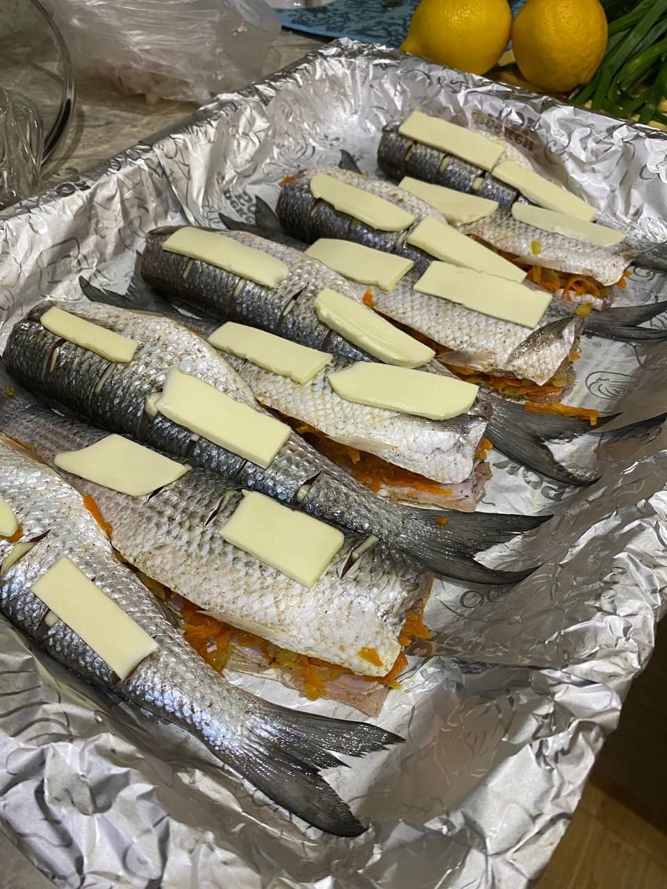 Его ответ цензура, конечно, не пропустит, но если кратко, это звучало так — «просто обалденно получилось»😁. Единственное, они запекали рыбу в духовке и была начинка, принципе тот же метод со сливочным маслом, только в профиль.