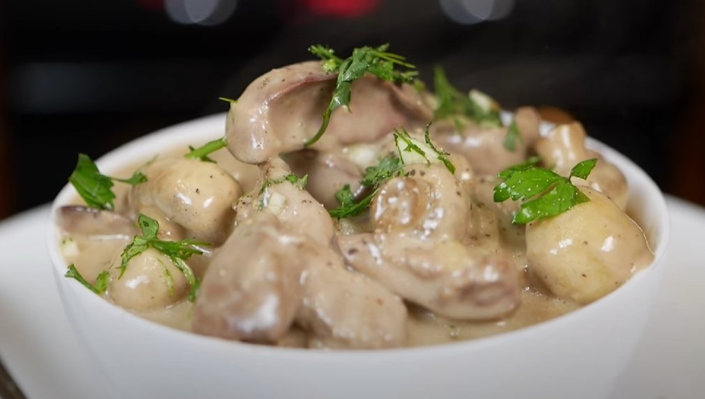 Куриная печень с грибами в сливочном соусе: быстрое блюдо на ужин, которое понравится многим