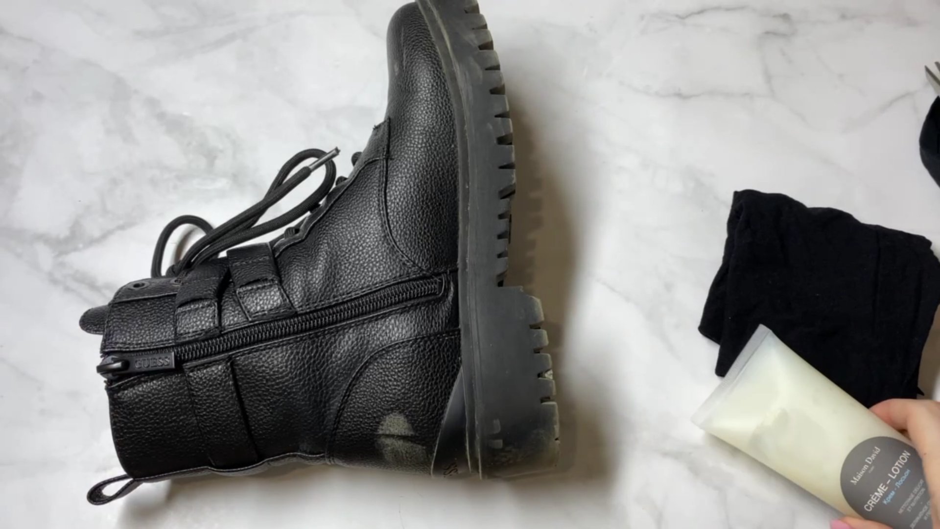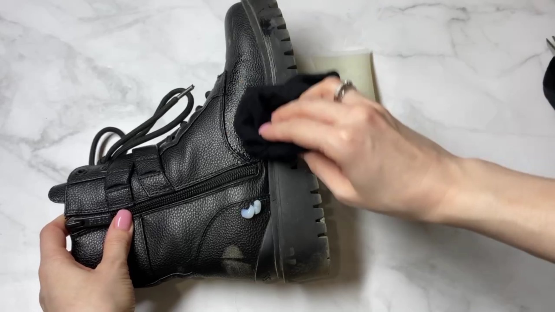 Я смачиваю их в воде или наношу специальный крем и протираю ботинки. Берите на заметку этот способ, скоро ведь дождливая осень.