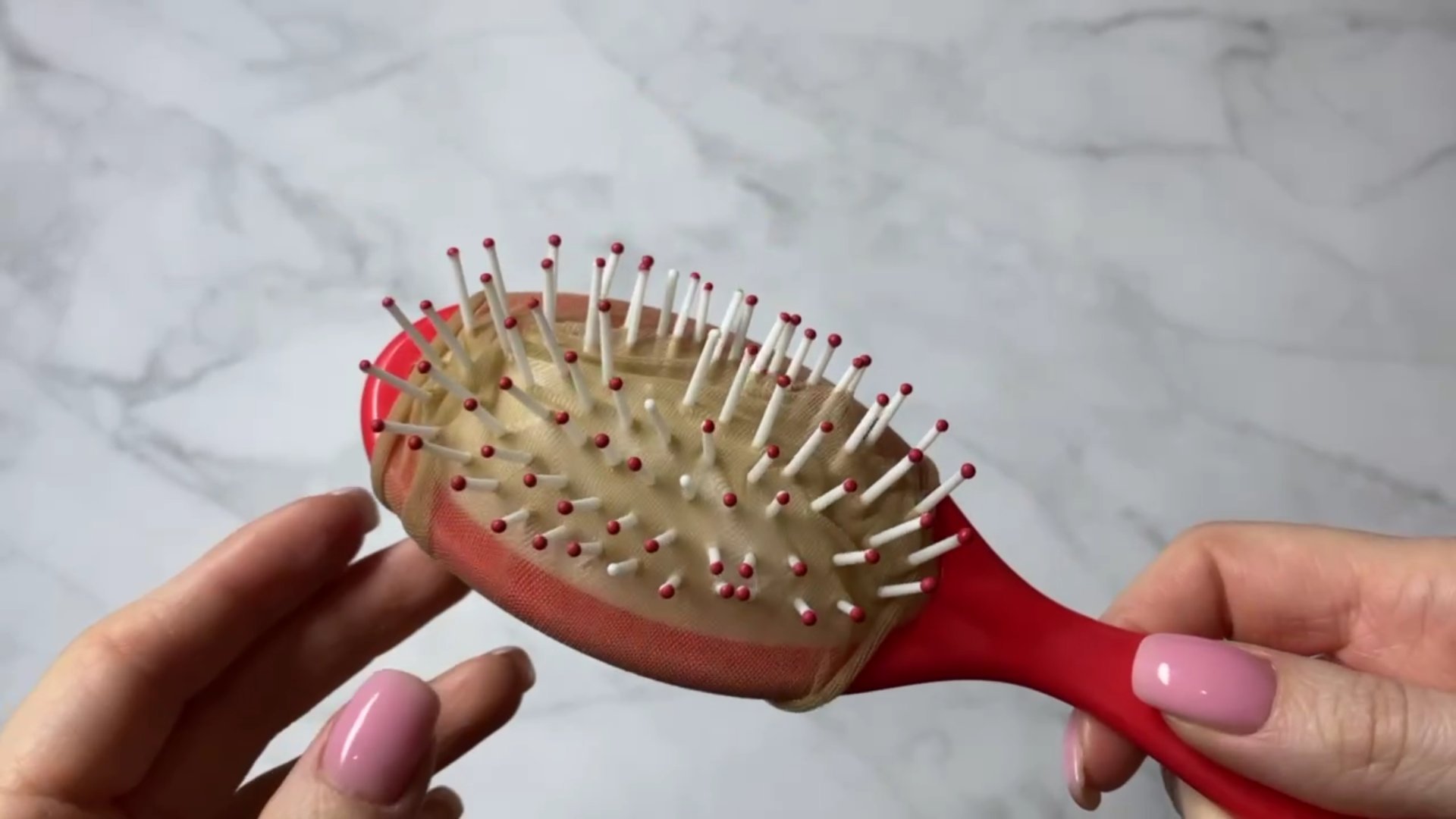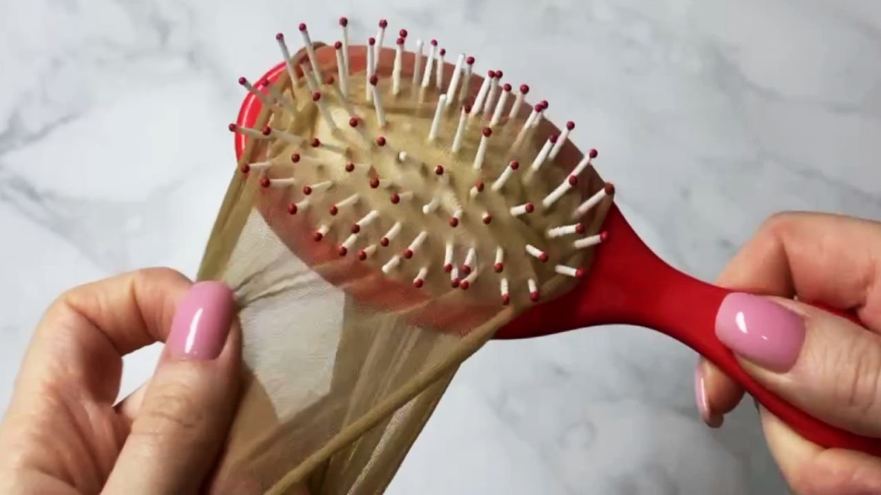 Из-за того, что мне всегда очень лень чистить расчёску, я подумала, что отлично бы сделать для неё чехол из колготок. Когда чехол становится грязным и «волосатым», выбрасываю его и заменю на новый.