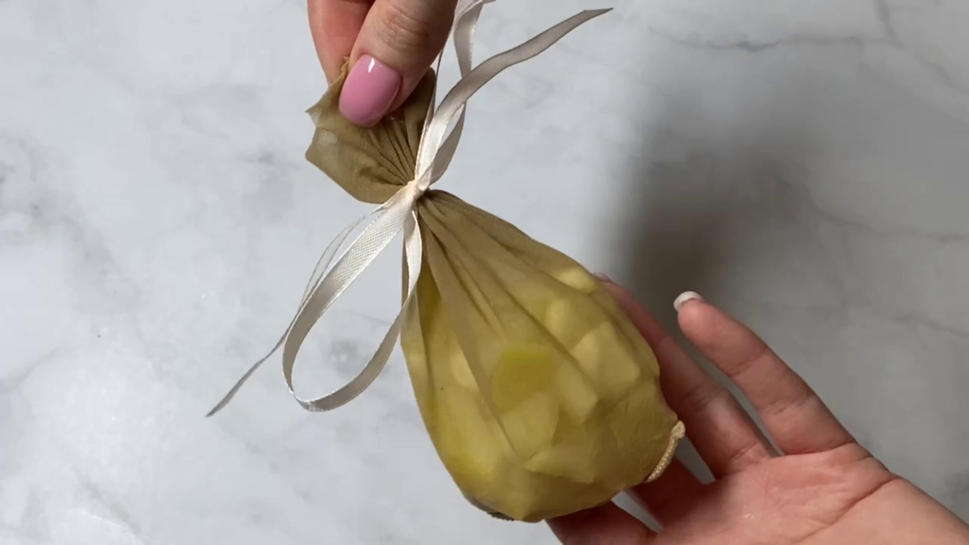 Из старых колготок я приноровилась делать даже ароматизатор для ванной комнаты.