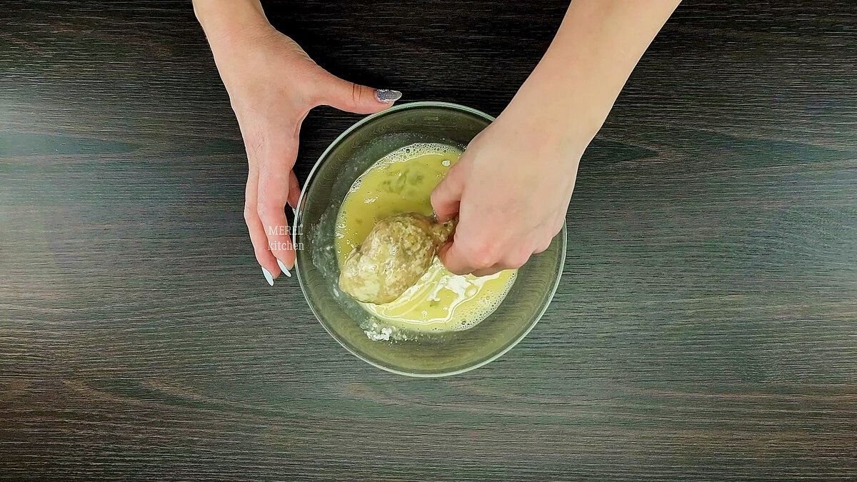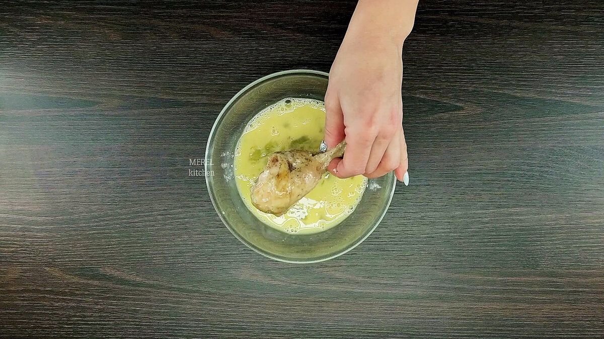Куриные голени нужно обмакнуть яйцо.