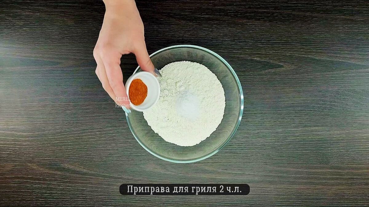 Дальше берем муку 100 граммов и добавляем в нее специи: