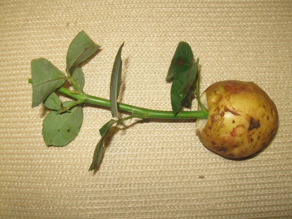 Этот «корнеобразователь» сейчас очень популярен. Для укоренения черенков выбирают крупные и здоровые клубни. В них делают отверстие и вставляют черенок. Таким образом хорошо укореняются многие комнатные цветы, а также садовые розы. В летнее время клубни можно закопать в землю, чтобы черенки приживались прямо в открытом грунте.