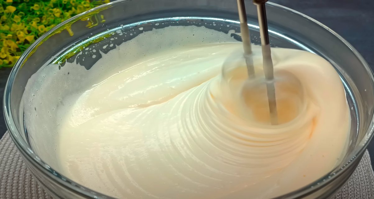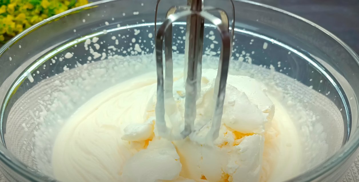 ШАГ 6: Готовим крем — сливки взбиваем с сахаром и щепоткой соли. Добавляем сливочный сыр и еще раз взбиваем.