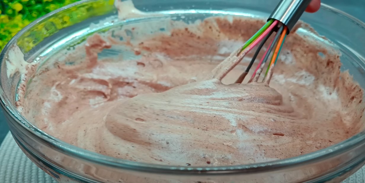 ШАГ 3: Порционно подсыпаем сухую смесь в яичную и перемешиваем массу венчиком.