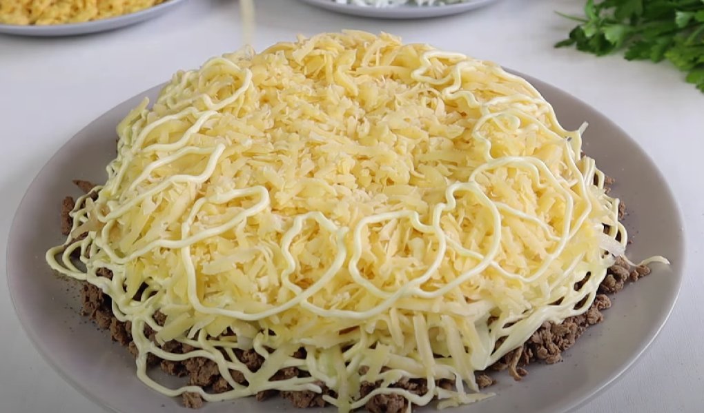 ШАГ 6: Далее, тертый сыр и снова майонез.
