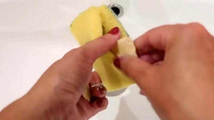 И снова способ, который нам предлагают заботливые хозяюшки из интернета. Они используют обмылки для мытья посуды, причём весьма интересным образом. Делают надрез в губке для мытья посуды и вкладывают в него обмылок.