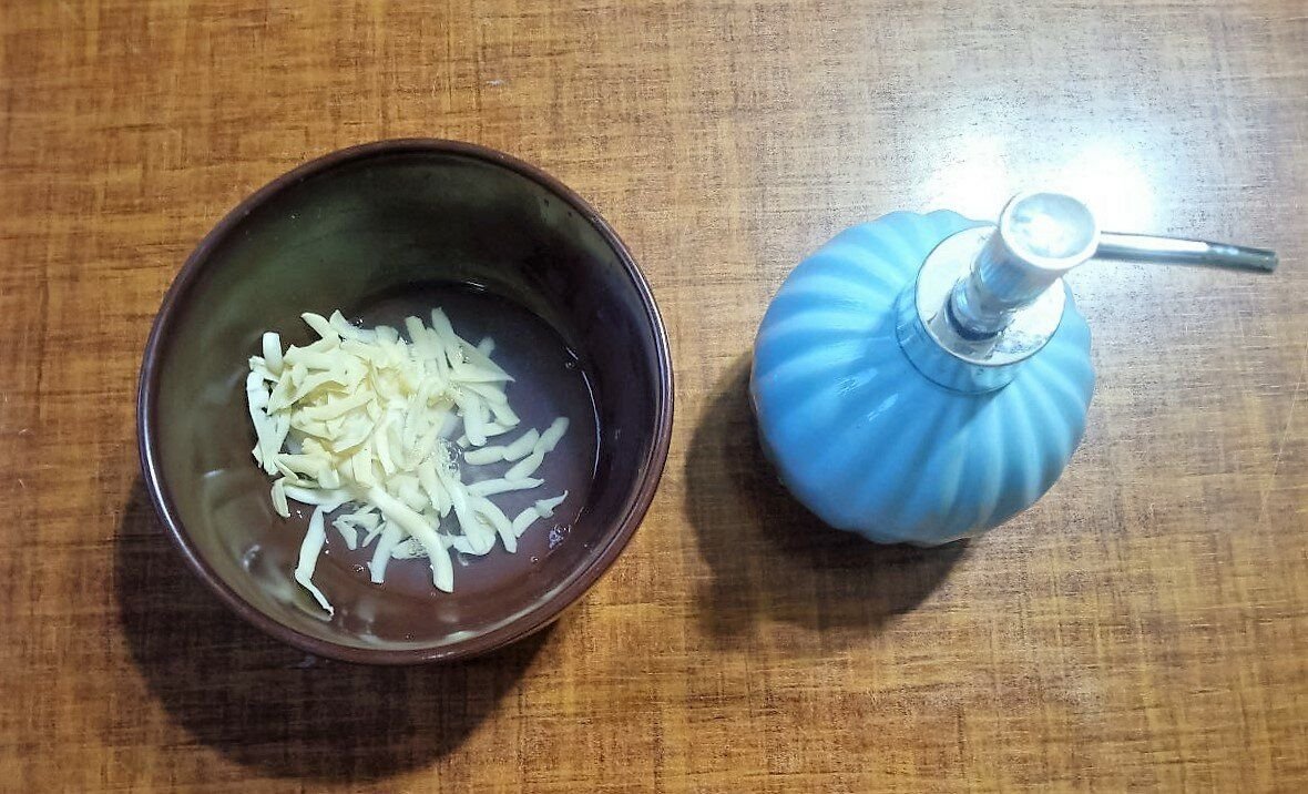 - Нужно собрать несколько обмылок и натереть их на тёрке.