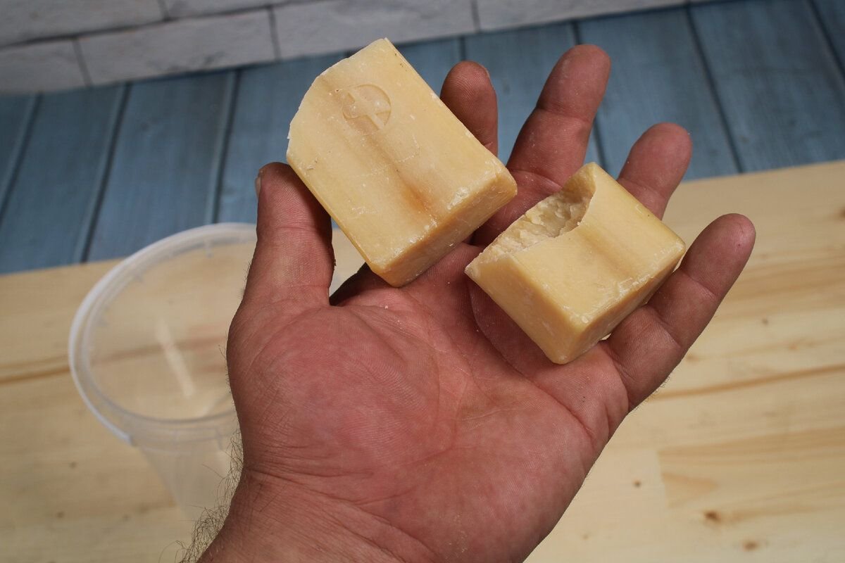 Зато вот такой кусок хозяйственного мыла продаётся буквально за копейки. Нам понадобится 100 гр.