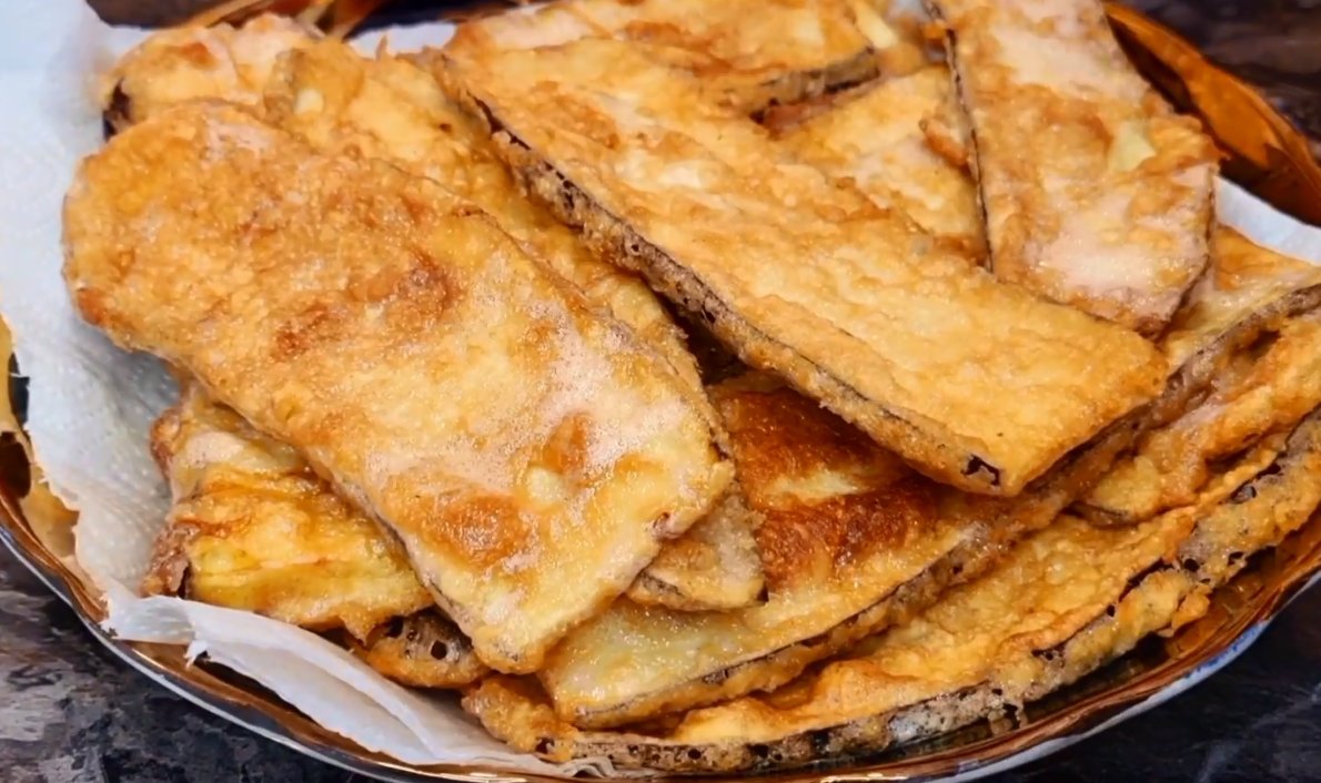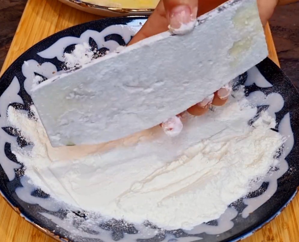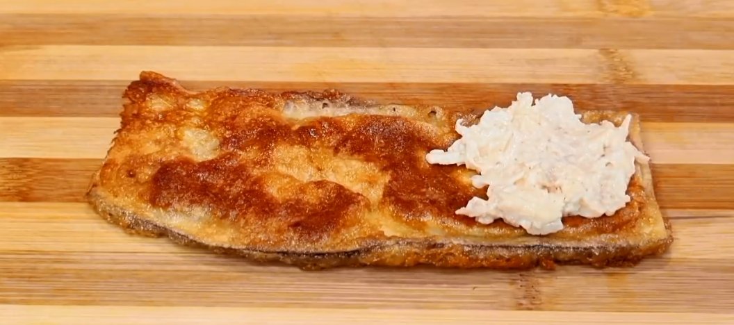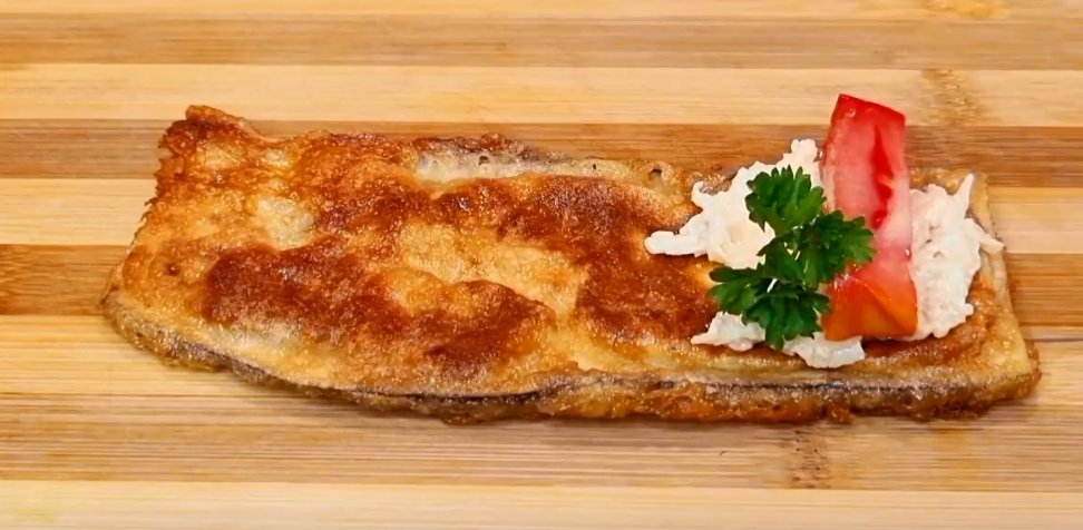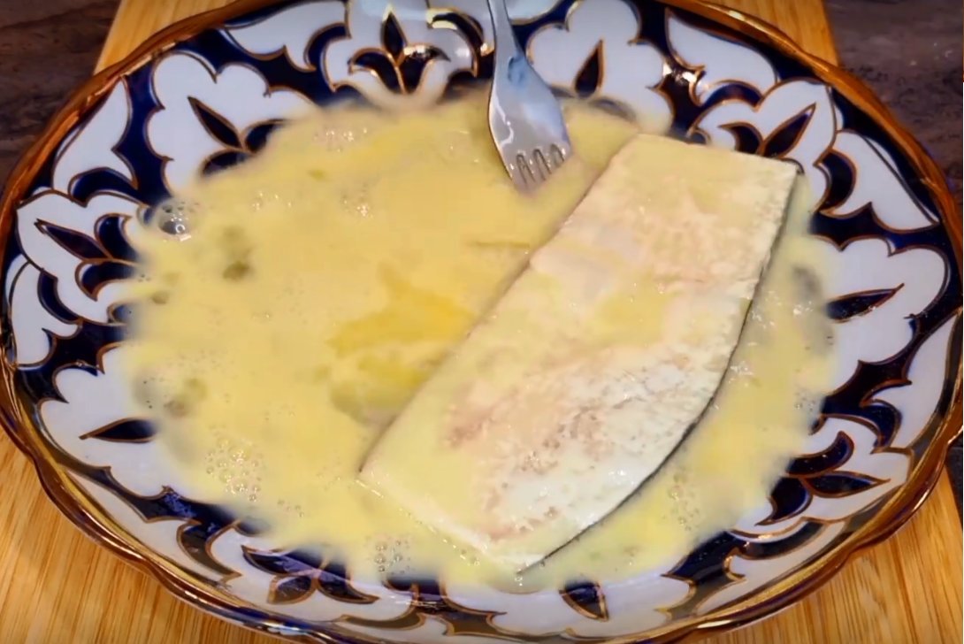 Ломтики баклажана обмакиваем в муке, затем в яйце