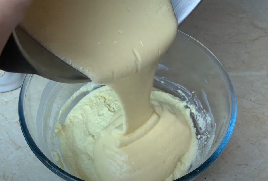 ШАГ 3: Выливаем яичную массу к манке и кефиру и хорошо перемешиваем.