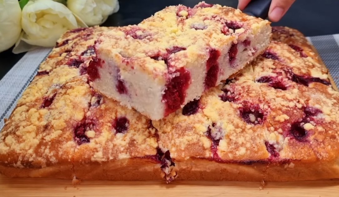 В пирог можно добавлять абсолютно любые ягоды и фрукты. Так каждый раз будет получатся новый пирог. Ингредиенты будут приведены в конце.