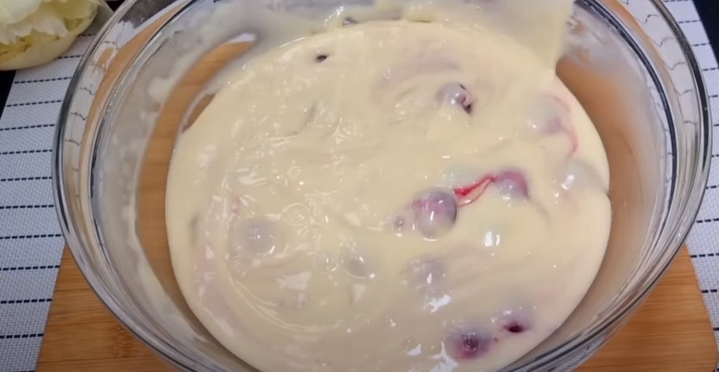 4. Если Вы используете в качестве начинки замороженные ягоды, то пересыпьте их с крахмалом или мукой. А после добавьте в тесто и перемешайте.