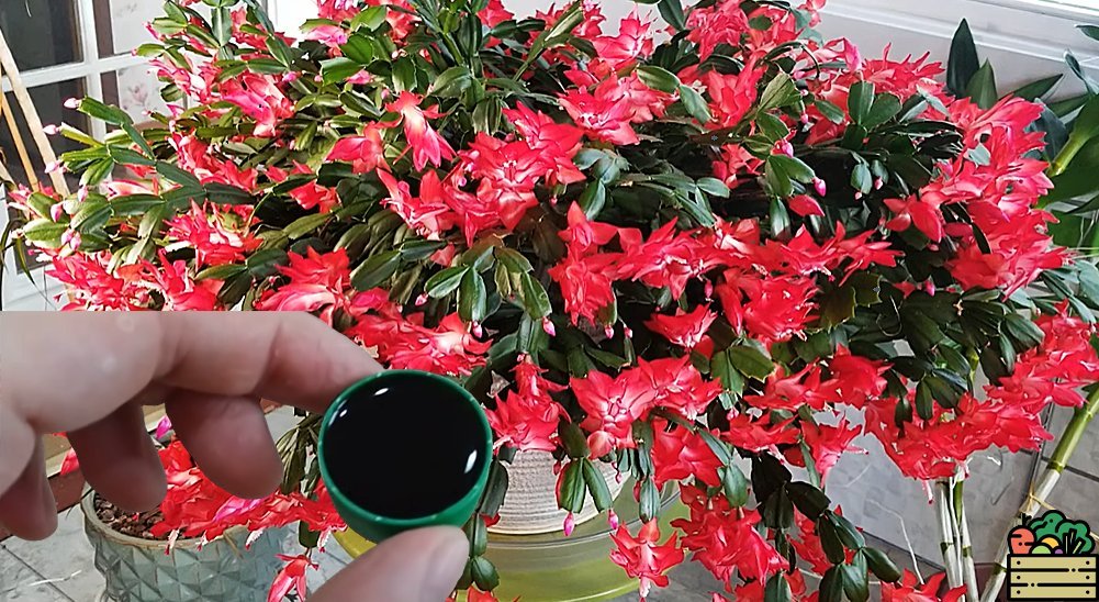Подлейте 1 колпачок удобрения под декабрист. Он будет обильно цвести с декабря по май