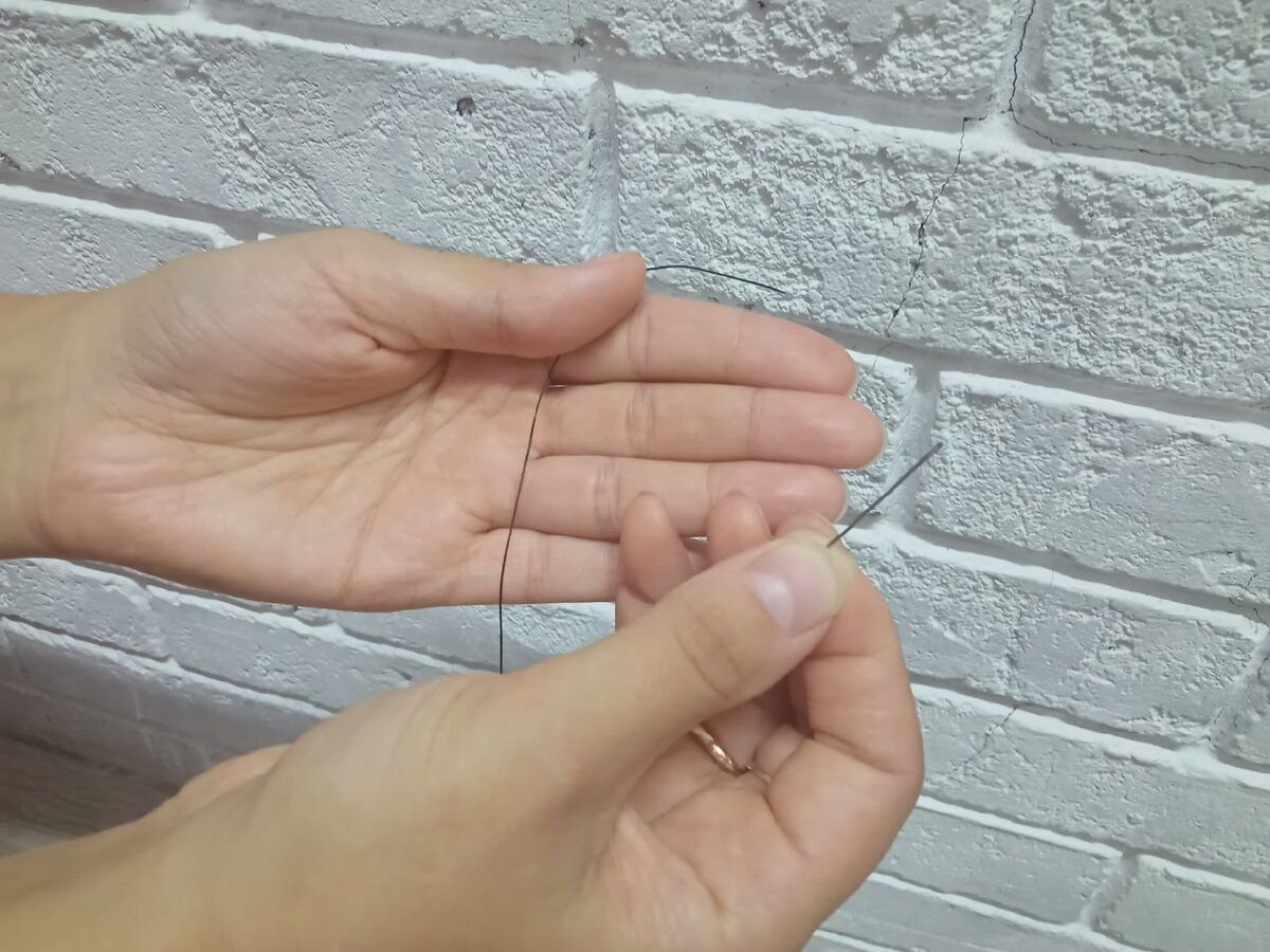 Я предложила бабушке положить нитку на ладонь левой руки.