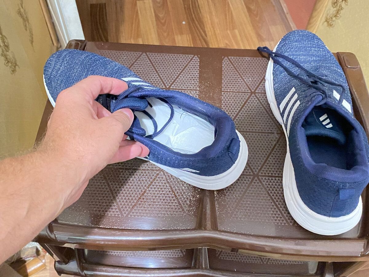 Если у вас сильно потеют ноги, то нужно просто прям на стельку положить женскую большую прокладку. Можно взять ночной вариант. Клеящий слой не убираем, просто прям так засовываем прокладку в обувь. Если отклеить клеящий слой, то клей потом обязательно останется на стельке и начнет собирать мусор. Прокладка после этого никуда не съезжает. Получается очень удобно и она будет хорошо впитывать всю влагу. Если не знали о такой хитрости, то берите на заметку