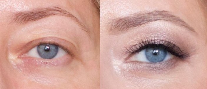Примерные изменения. Даже без ресниц и межресничной линии глаза преобразятся