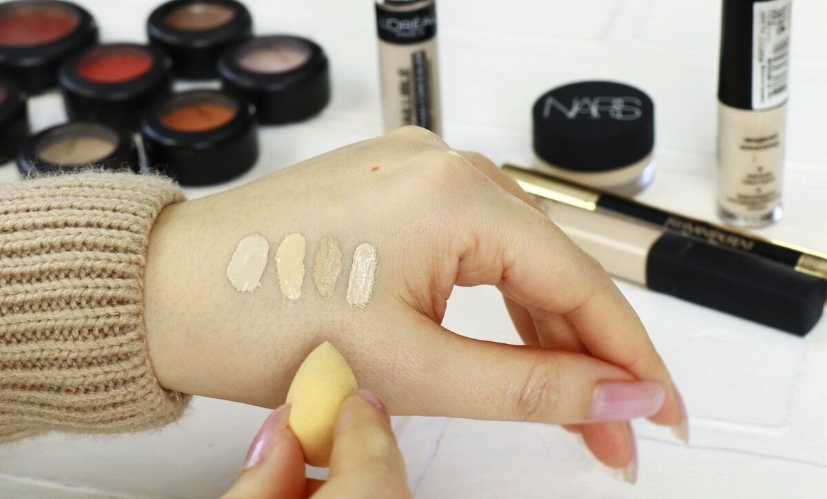 Первое, что вам нужно подобрать — это консилер. Желательно, чтобы он был со светоотражающими частицами и самое важное — он должен быть светлее вашей кожи (но не выбеливающий). От себя могу посоветовать консилер от Vivienne Sabo Aurora. Также нужен спонж или кисть, которыми можно работать точечно. Например, подойдет спонжик, который у меня на фото: