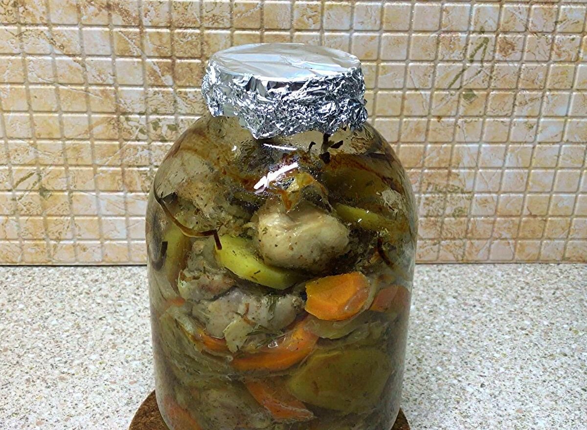 Да кстати, для приготовления этого рецепта понадобится трехлитровая банка и фольга.