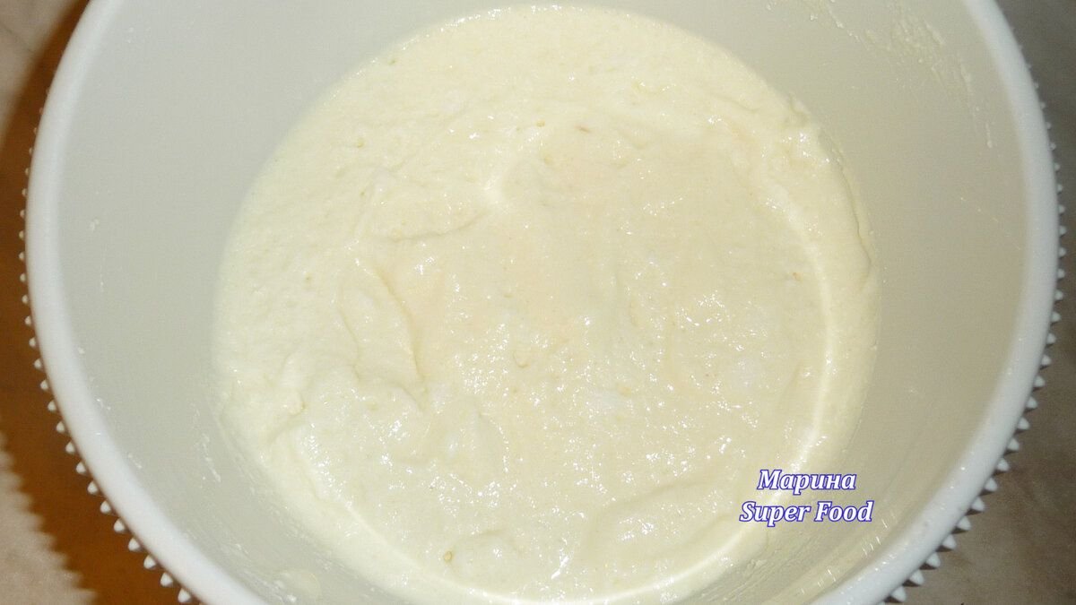 5. Потихоньку всыпаем крахмал и взбиваем ещё 5 минут. Нам нужно чтобы масса стала пышной.