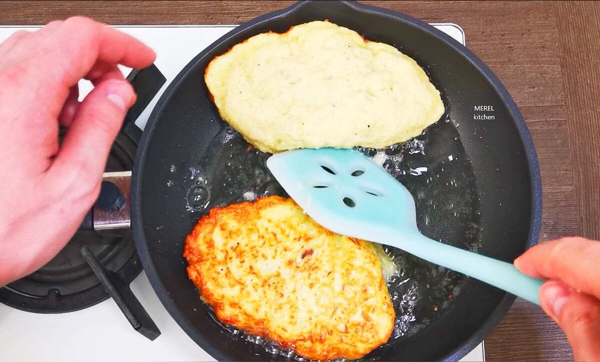 Зразы нужно жарить на среднем огне с каждой стороны до золотистого цвета, по времени примерно 3 минуты, чтобы картофель не пригорел. Доводить до готовности зразы нужно под крышкой. Для этого включаю очень маленький огонь и томлю 13-15 минут.