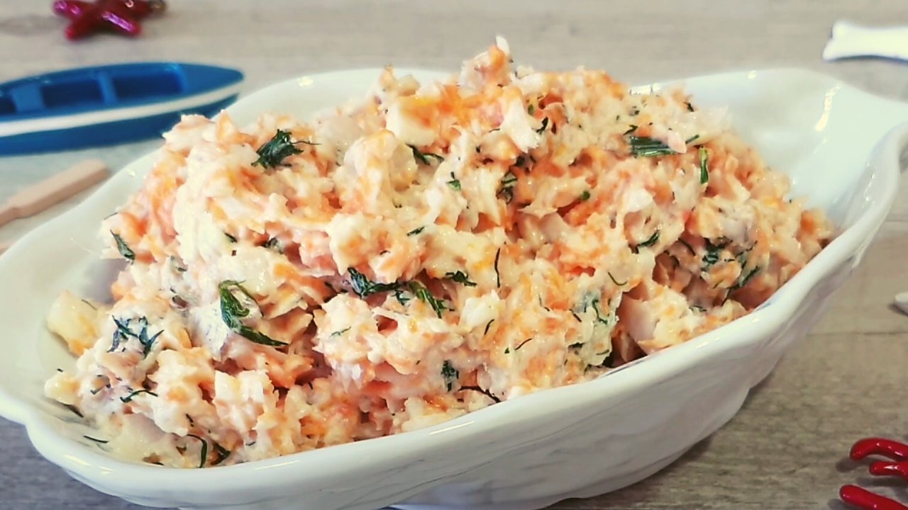 Рецепт бюджетного салата «Раковые шейки» из 2 простых ингредиентов : по вкусу напоминает салат с настоящими крабами