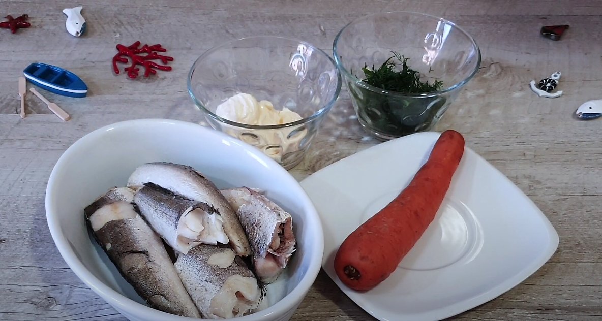 - Минтай — 2 рыбины,