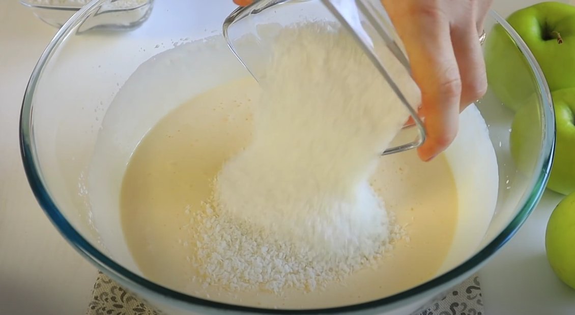 Всыпаю кокосовую стружку. Если не любите кокос — не используйте или замените на орехи или изюм.