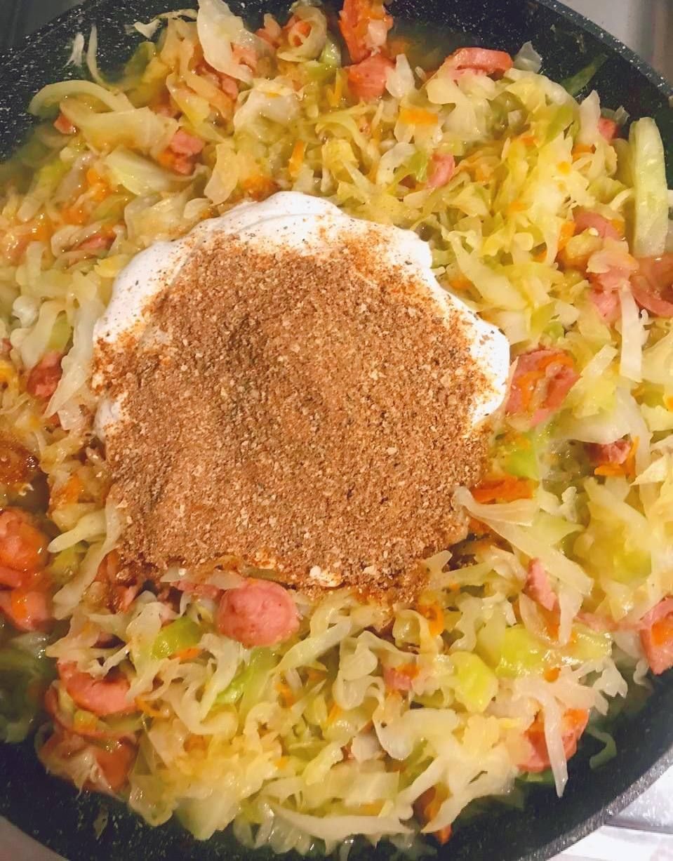 9. Добавить сметану и специи (смесь Магги).