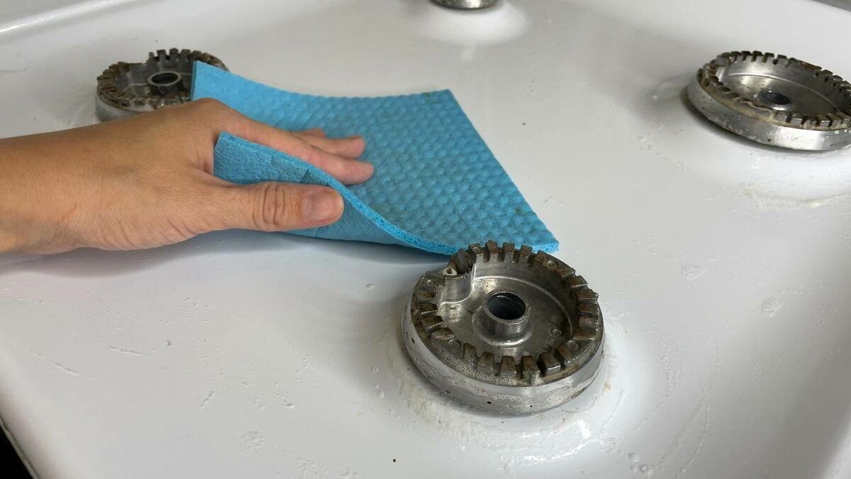 А сколько хлопот нам обычно доставляет газовая плита. На ней образуются, наверное, одни из самых сложных загрязнений. Это пригоревшая ежа, жир, липкие засохшие брызги. Со всеми этими проблемами справляется моя паста.