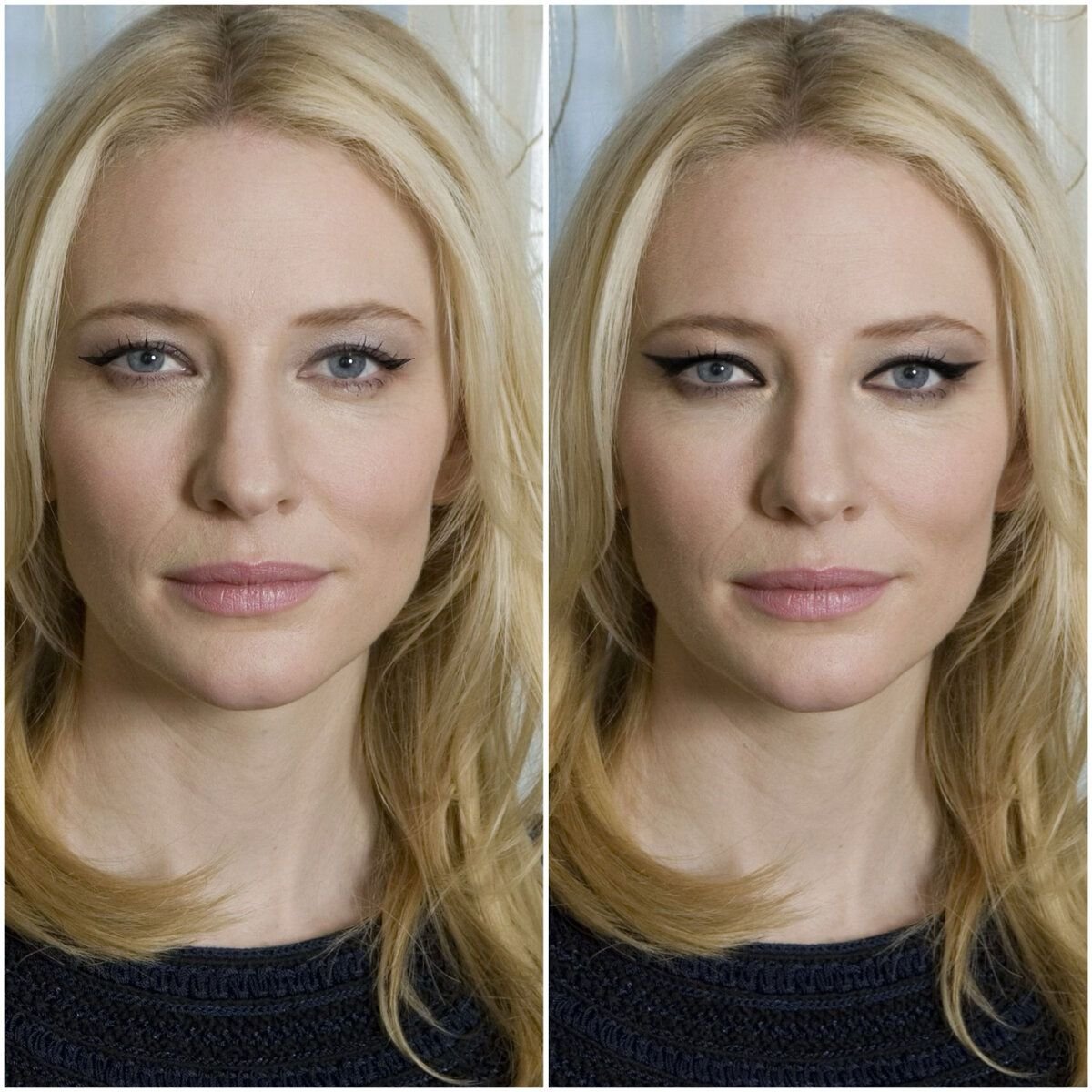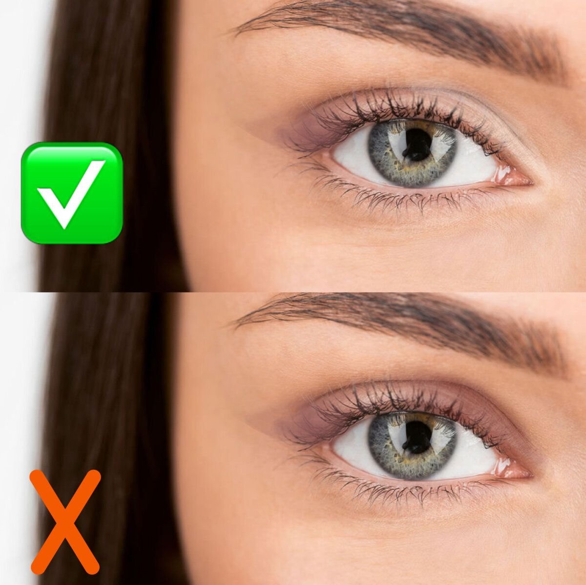 Посмотрите как наглядно на фото выше поменялось лицо нашей модели с неправильными жирными стрелками на все веко, она стала старше, взгляд максимально тяжелый. С правильными стрелками она выглядит свежо и красиво.